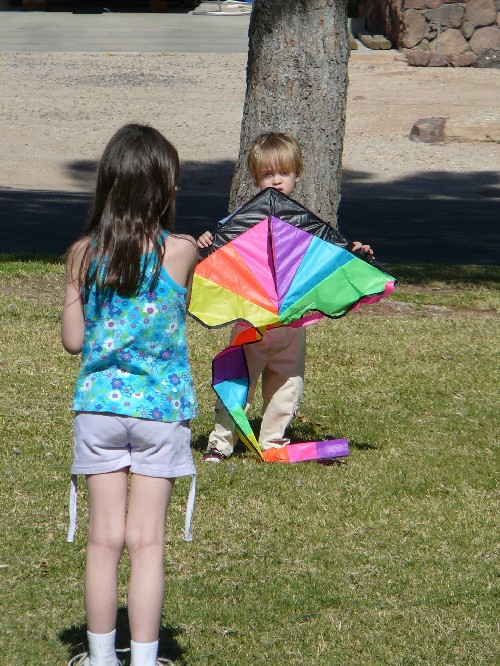 Jenna and Thomas flying a kite at the local park