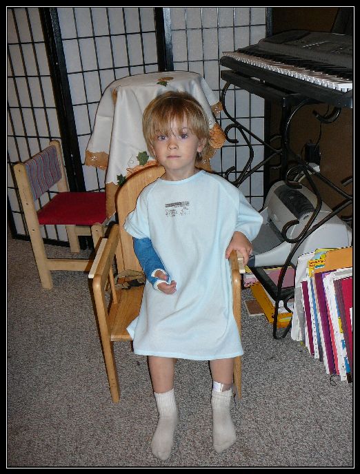 He has on his new cast - It's bedtime the night before Thanksgiving